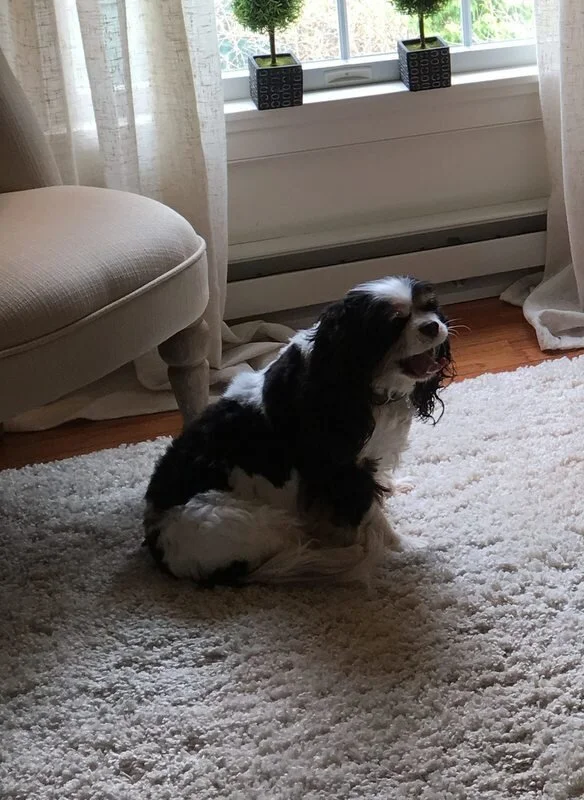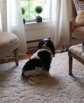 So, I've been working on my landing, trying to create a relaxing place to read when the cold weather drives us inside for our long Ohio winter. Excursions through Homegoods and perusing Wayfair have helped me find these beautiful wingback chairs, a cute little cupboard stands between them looking completely adorable. All that I ask of my pretty little Cavalier is that she pose attractively in front of them.