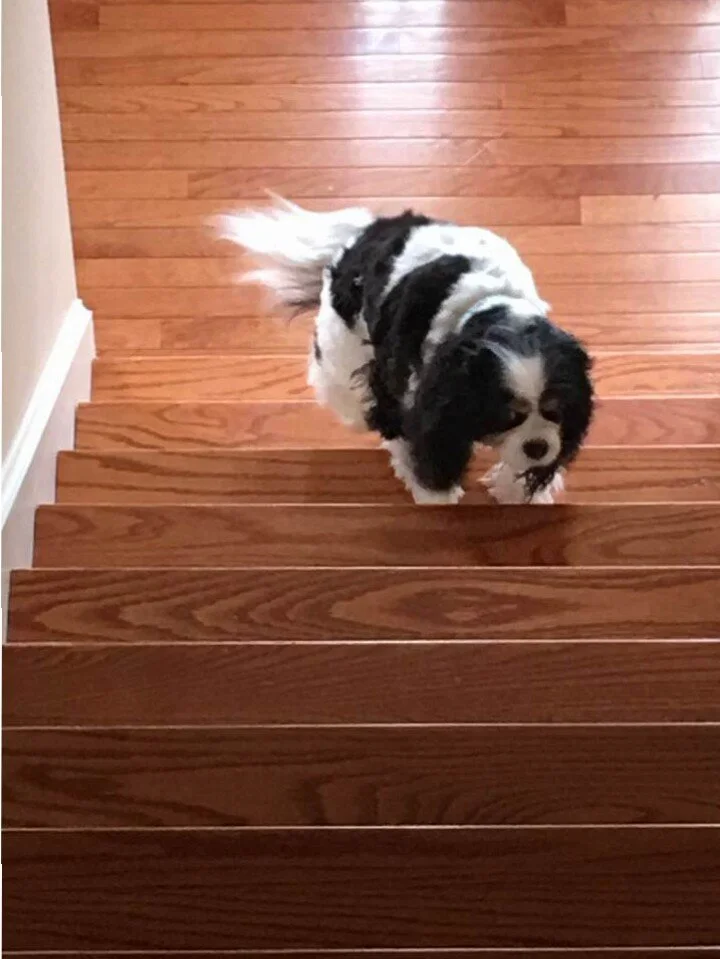 This dog is too smart, I try to hide my iPhone and the fact that in my Instagram frenzy, I’m already taking her picture. Her eyes glaze a bit, she carefully weighs the benefits of obedience and the pain of extreme canine boredom and with a heavy sigh begins to trudge half-heartedly up the stairs.