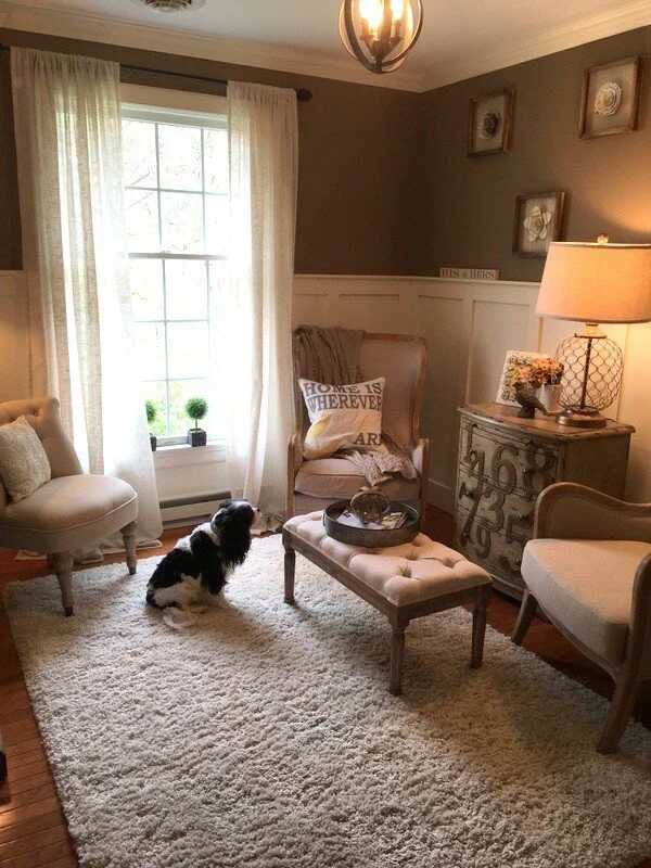 I have to blame Fixer Upper, or maybe my favorite decorating blog, Thistlewood Farms (LOVE Kari Anne!), but suddenly I'm seized with the desire to freshen up our farmhouse. My dog's very easy part in this endeavor is simply to pose attractively in whatever space I'm currently trying to share with the world. Theoretically, this is a great idea, she's beautiful, and what is more amazing than a gorgeous dog posing in a beautiful room?