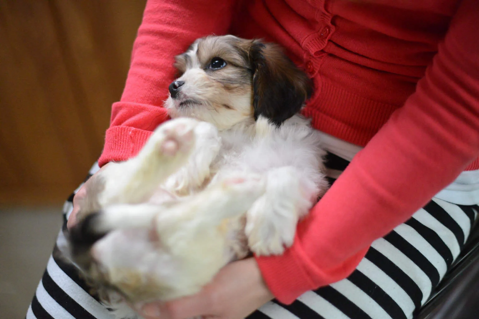 (this is part of your puppy's 5-year health guarantee so please keep her on this top quality supplement) It comes in a chewable tablet or a chicken flavored powder to mix in food. I use one tablet a day for my puppies and dogs alike. You'll need to order it directly from NuVet as it's not available in stores: http://www.nuvet.com/11982 Look in the large padded envelope atop your puppy's carrier, it will include many puppy pleasing goodies including a cute stuffed frog, elephant or bear, a polar fleece rope bone toy (made from puppy baby blanket) that works as a great Puppy Pacifier! I’ll send along a sample of shampoo & coat conditioner for that first bath. Also, vaccination & worming records are on top her kennel, along with a tiny collar and a bag of Nutro Ultra puppy food, and even a colorful bandana for dress up!